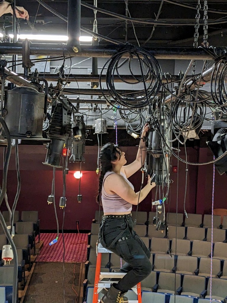 Ashley McBreairty is an award winning lighting designer based out of the Southern Maine region. Her time studying both Theater and Psychology at the University of Southern Maine have paired together to inform her design choices, utilizing human perception of color to influence her work to create unforgettable, surreal, and complex works that accompany the plot of any show she works on. She has over 100 credits to her name and has been working in theater since she was four years old. She can be found both on and off stage, specializing in lighting design, set design, light board oping, scenic painting/carpentry, stage management, props mastery, acting, musical theater, and much more!